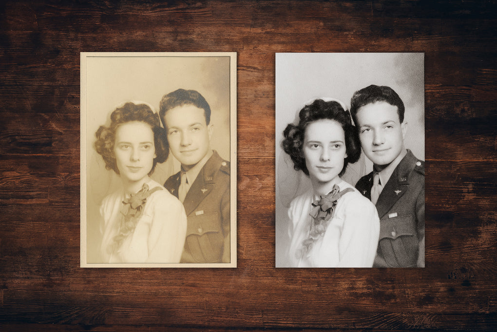 Our photo restoration services are done digitally. Just about anything can be restored and any damage fixed. Since each photo has its own unique restoration needs, time and estimates vary per image.
